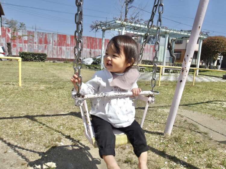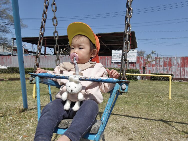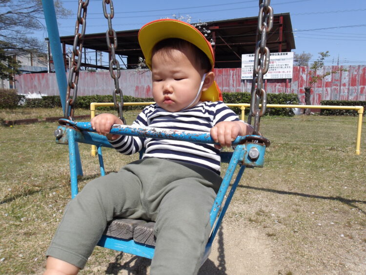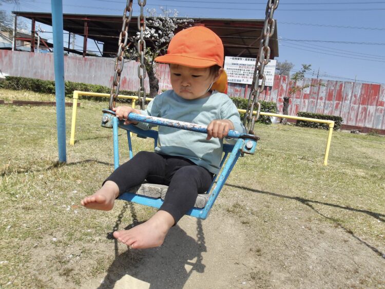 小さいブランコにも挑戦。座って少しだけゆらゆらしてみました![]()