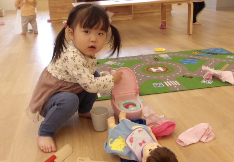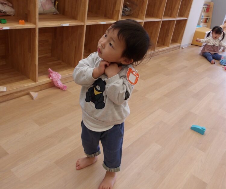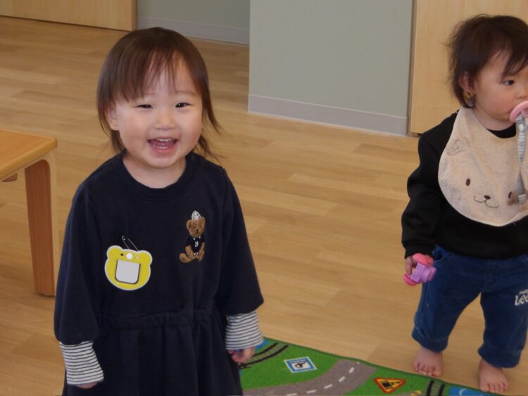 新しい保育園に、まだまだ緊張気味の子もたくさんいます