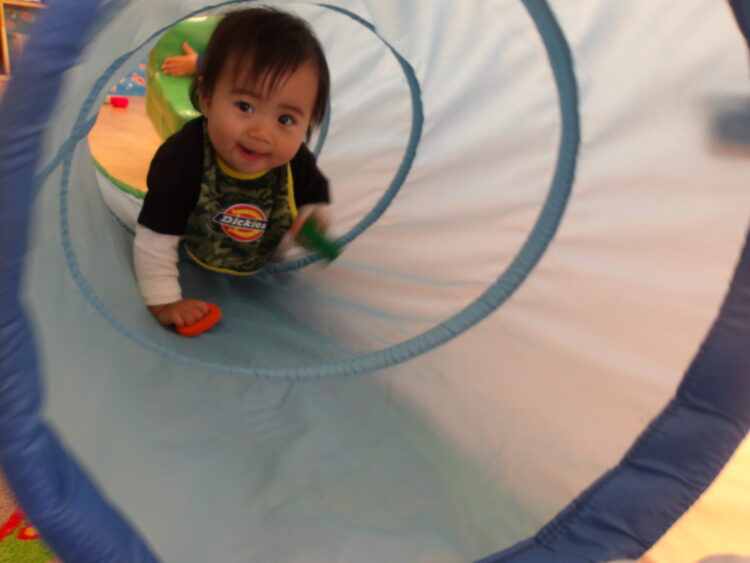 ひよこ組さんはお誕生日の後、トンネルやボールなどで遊びました![]()