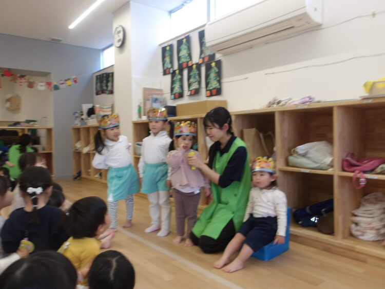 今日は乳児さんと幼児さんみんなで12月生まれのお誕生日会をしました![]()
