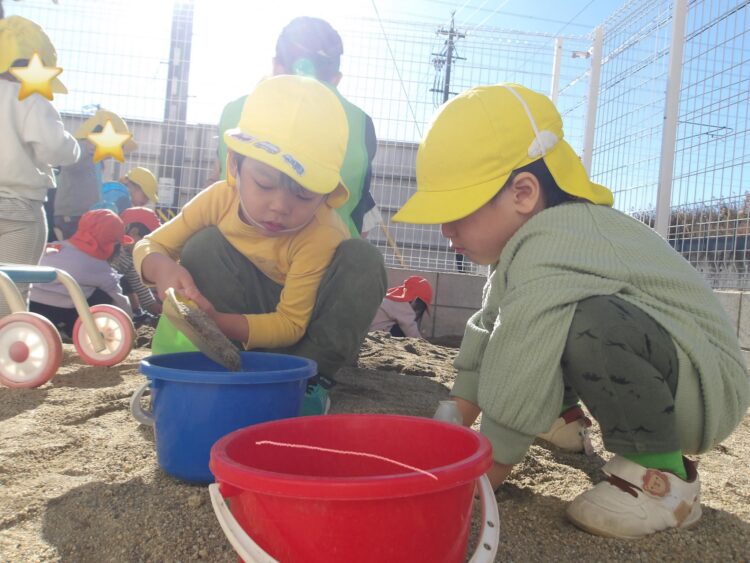 お誕生日会の後、うさぎ組さん・あひる組さんは園庭に出て元気いっぱいに遊びました![]()