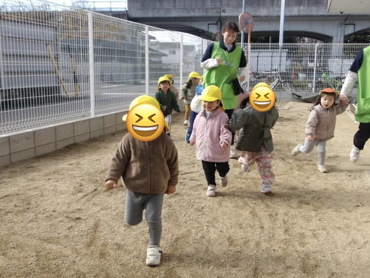 公園の木はすっかり枯葉が目立つようになりましたが、1本だけきれいに紅葉している木があり、12月に入ってからの、のんびり屋さんの紅葉狩りツアーに夢中の子どもたちでした![]()