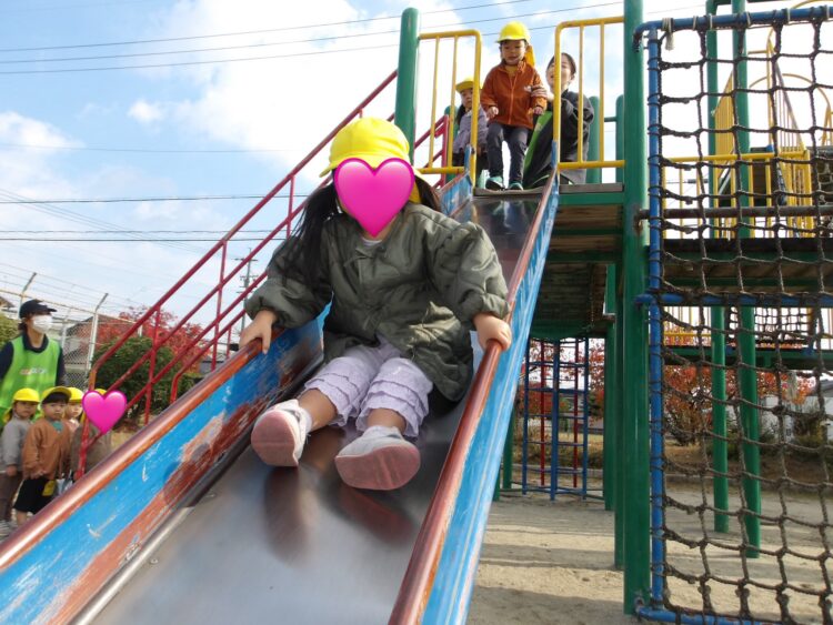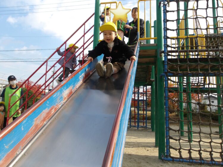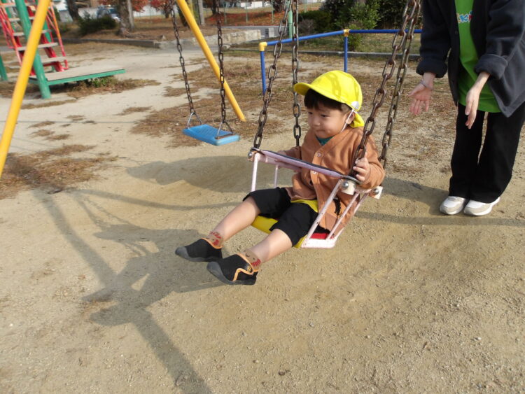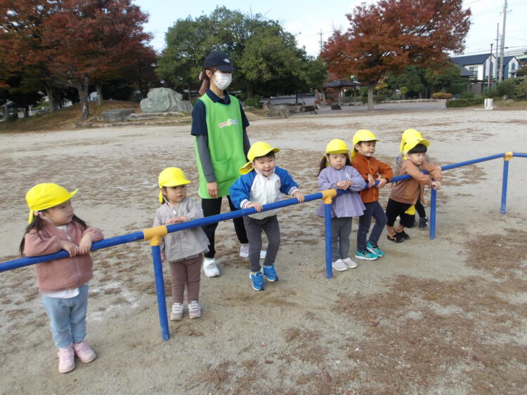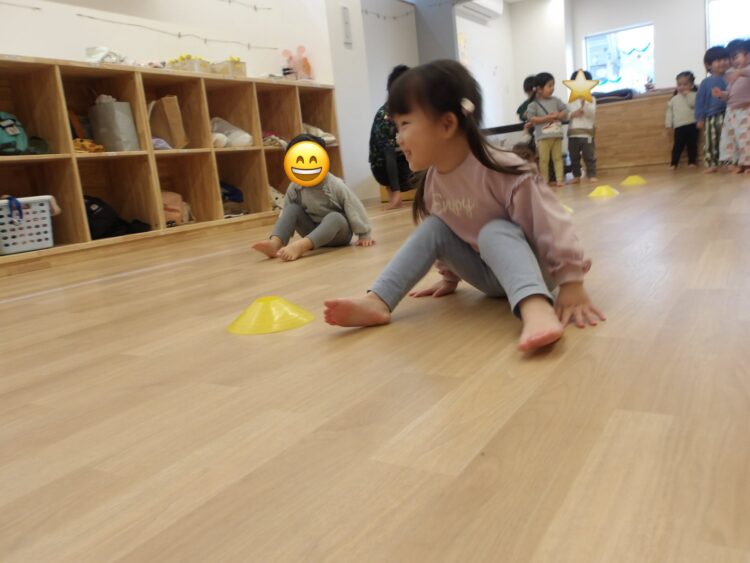 くるんと回ると、後ろのお友だちと目が合い、ニコッ![]()