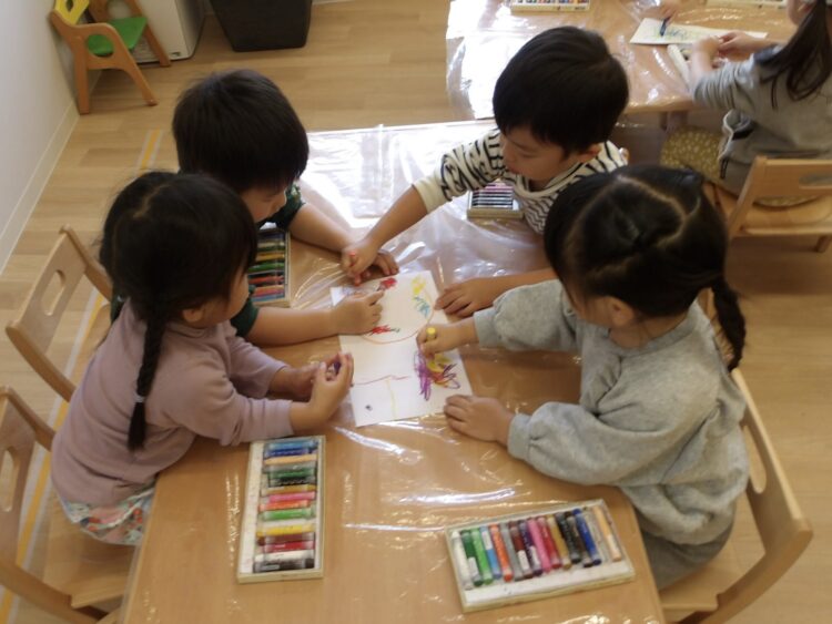 みんなで相談して、何の絵を描いているのかな、、、?![]()