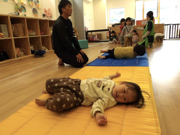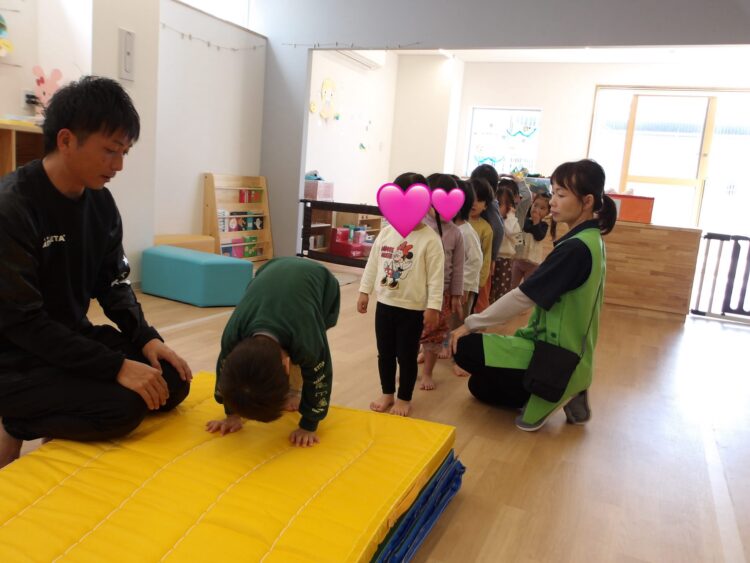 体操教室では新しい技「お尻をつけて進む」をしました!