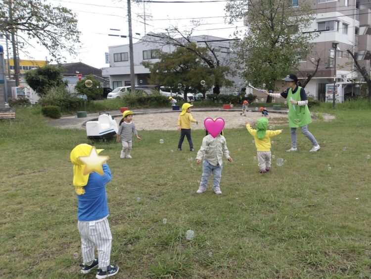 どんぐりの木があって沢山どんぐりが落ちているのにみんな大興奮!両手いっぱい拾ってたくさん集めていましたよ😄