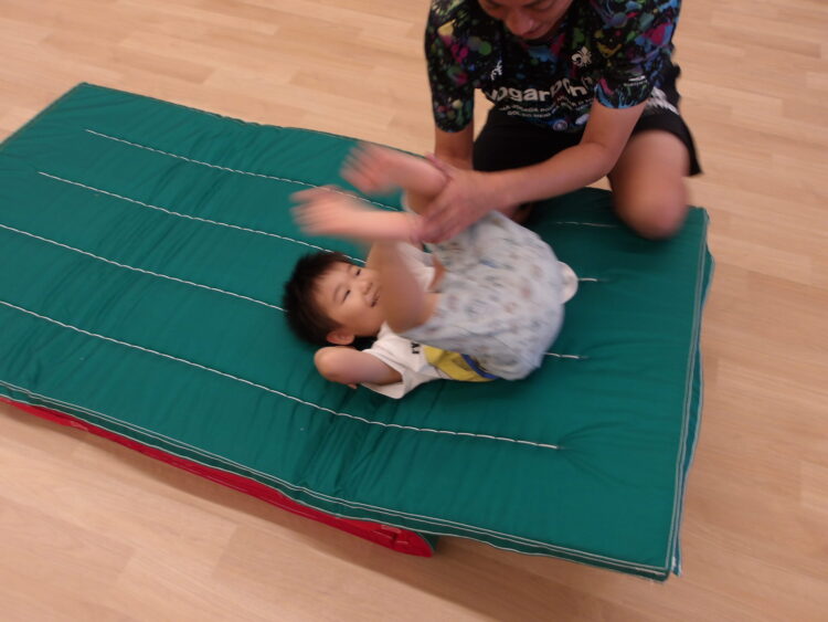 よーいどん!とどのぬいぐるみが早いかやってみたり、隙間を滑らしたりいろんなアイディアを出し合って遊んでいましたよ😊
