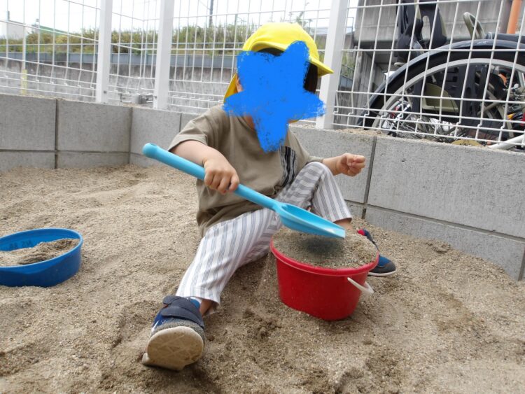 「すなのなかにむしさん、うまってるかな❓なにかはいってるかな❓いっしょにさがそー‼️」