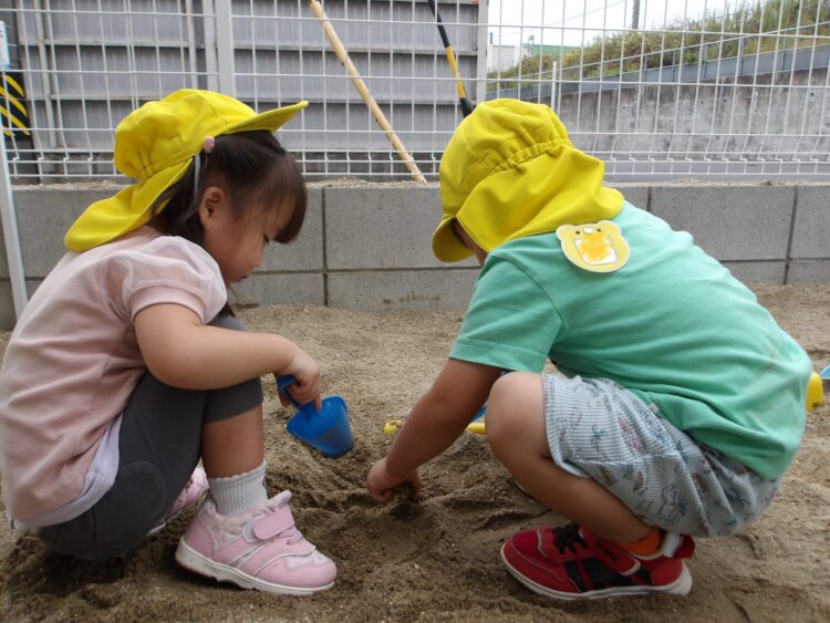 ひよこ組も一緒にお砂場で遊びました🐣