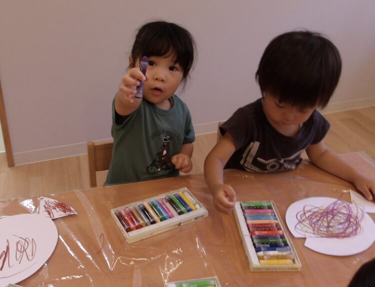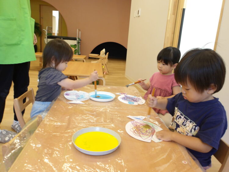 絵の具がクレヨンを弾く様子を楽しんでいました![]()
