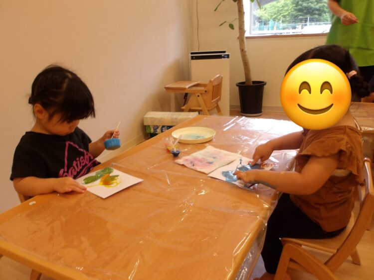 みんなは氷絵の具でシロップ作り🎨初めての氷絵の具に「つめたいね〜!」と興味津々![]()