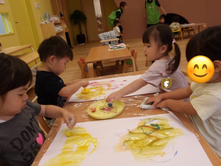 「きいろがいい〜!あおにするー!」と使った氷絵の具はお友だちと交代![]()