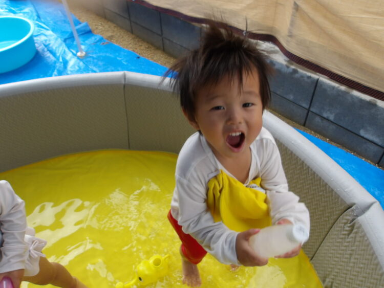 ようやくプールに入れて、子どもたちも嬉しそう![]()