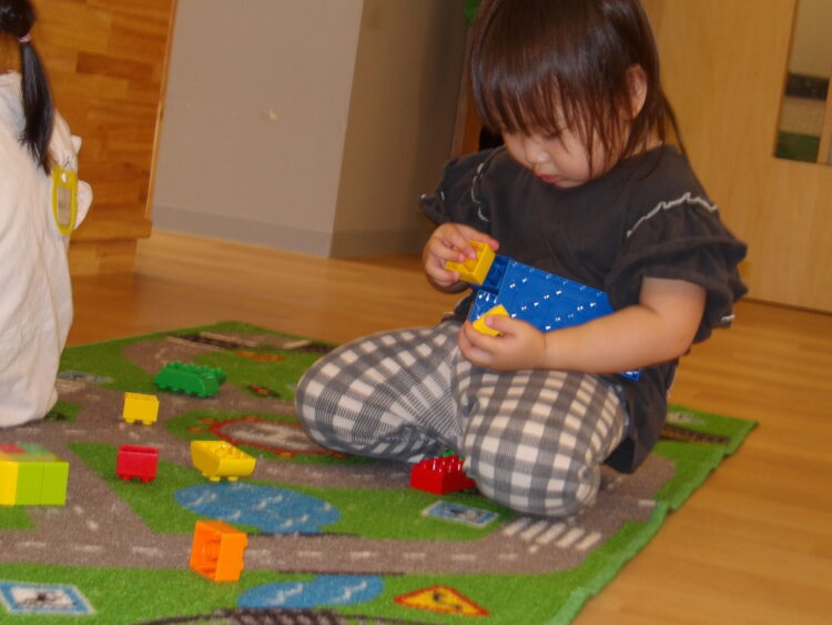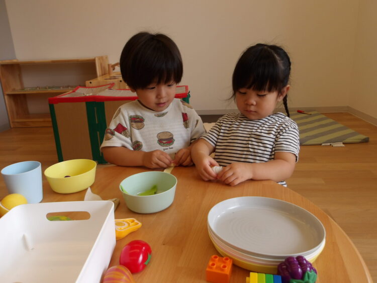 ままごとではビーズに紐をつけたのを導入すると、私もやる!と夢中に紐に通し出して遊んでいましたよ😄