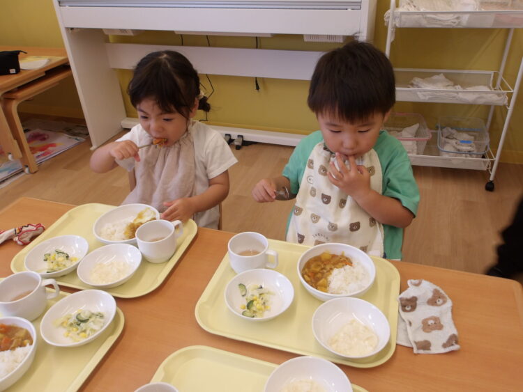 たくさん遊んでお腹がすいたら、大好きなお給食タイム![]()