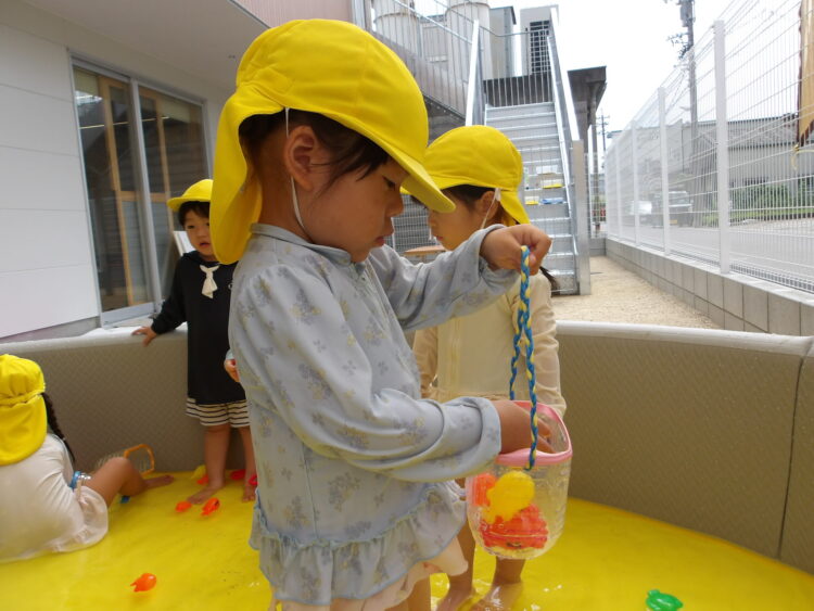 体に水が慣れてからは玩具を使って自由遊び🎵