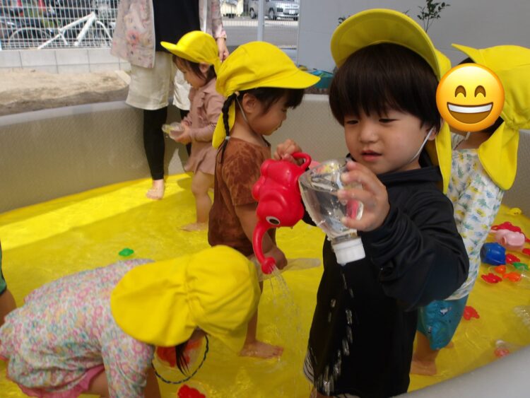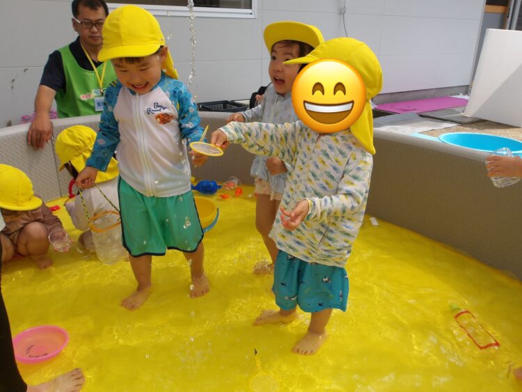 ペットボトルのシャワーを降らせると「あめだー!!」と喜んでくれるうさぎ組ですよ![]()