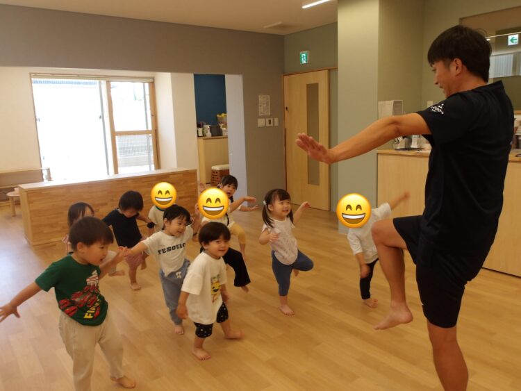 先生の動きを真似ながらいろんな動きにチャレンジです。みんなとってもいい表情をしていますね〜![]()
