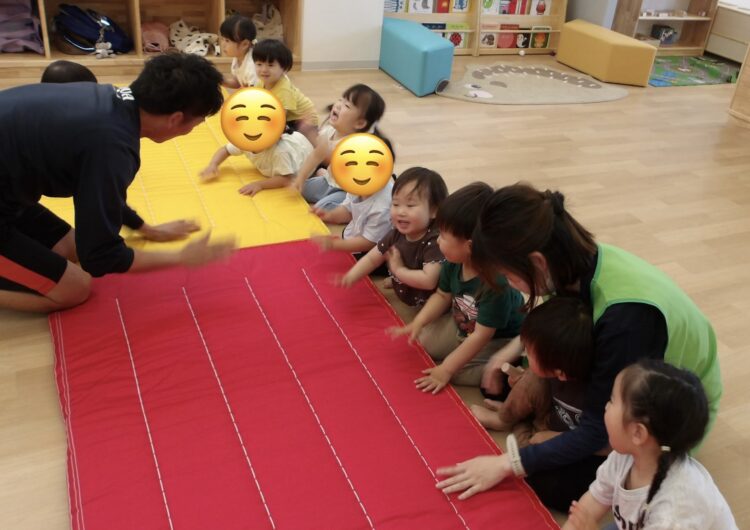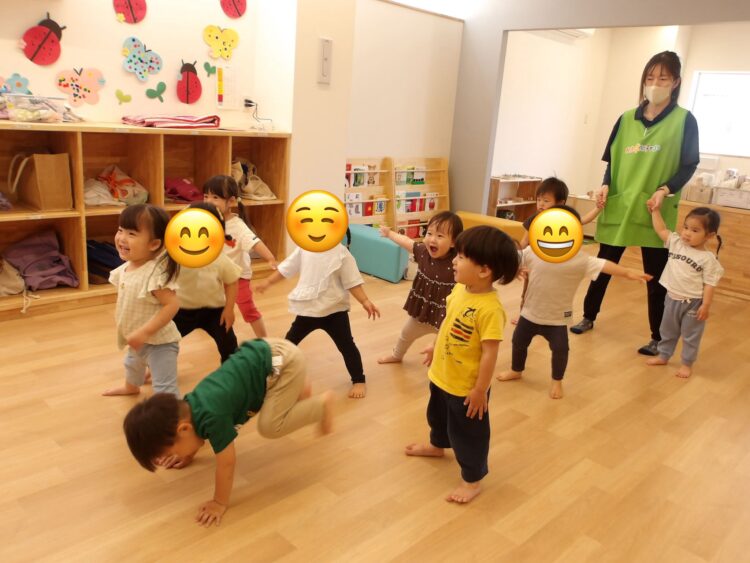 楽しみにしていた体操教室の時間、体操の先生が部屋に来ると嬉しくてはしゃぐ子どもたち😄