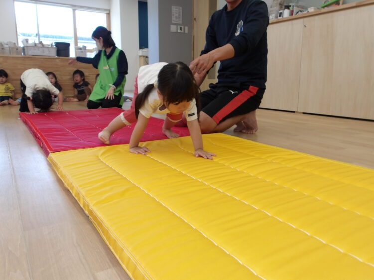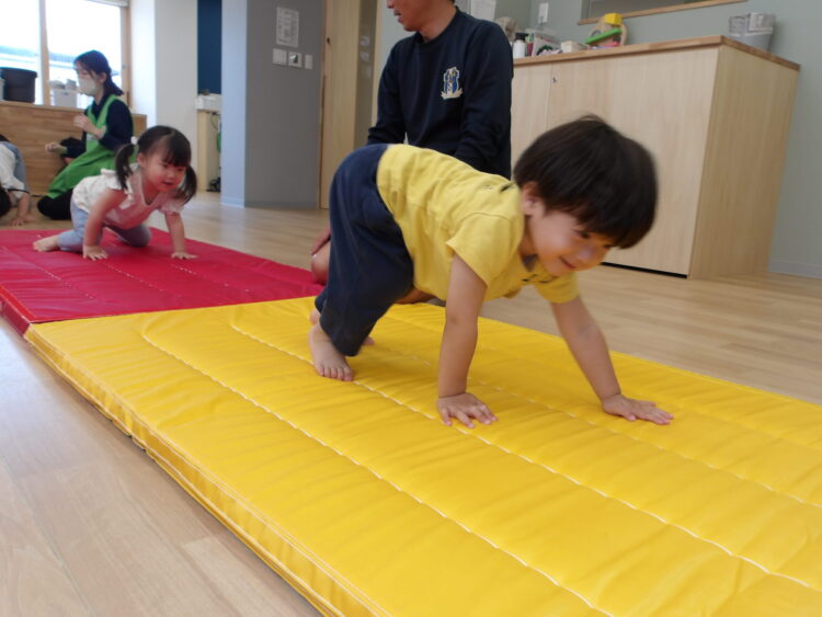 マットの上をまっすぐ走ったり、動物さん歩きにも挑戦![]()
