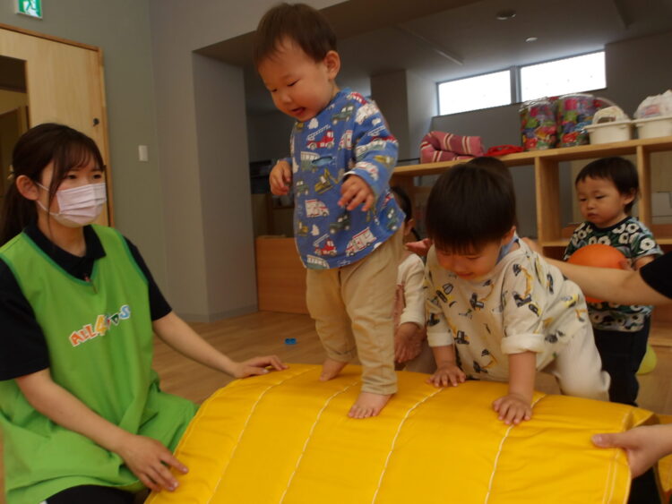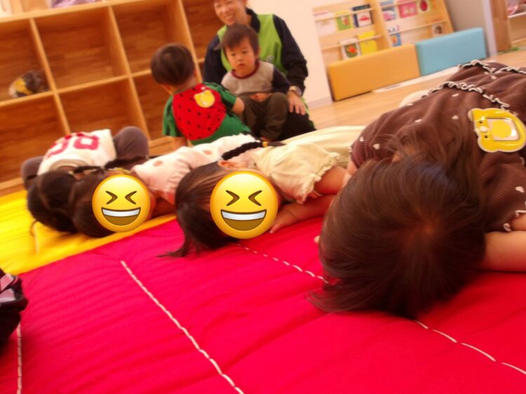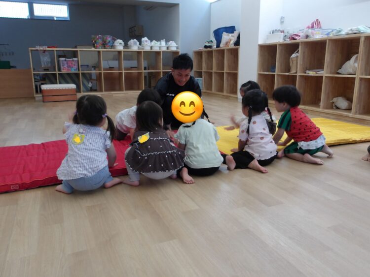 今日は体操教室がありました。初めは緊張していた子も体操の先生のお話を聞いているうちに楽しくなり、みんな体操の先生の動きを真似っこ