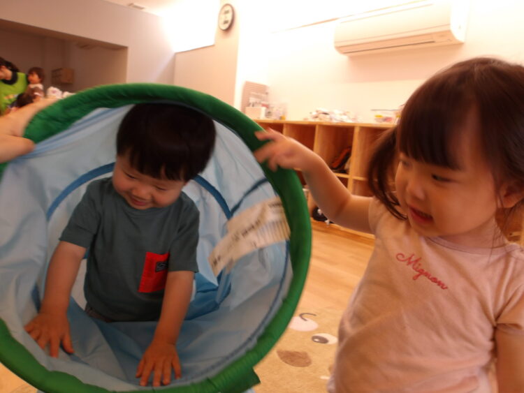 制作の後は、マットやトンネル、風船で遊びました![]()