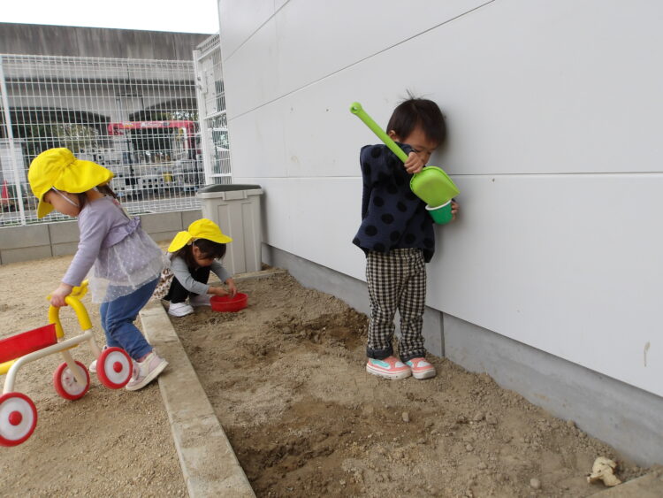 みんな外遊びが大好きで、保育園生活がまだ不安な子も外に出ると自分の好きな遊びを見つけて遊んでます!これからもたくさん外遊びしようね!
