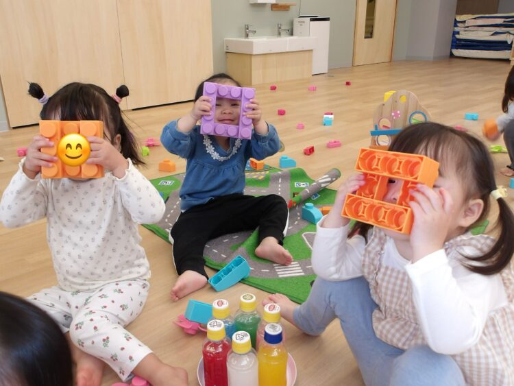 机ではブロックで作ったお家やいろんなところに自分の好きな動物のおもちゃで先生の仲立ちでお友達同士でかくれんぼして楽しく遊ぶ姿が見られましたよ😄