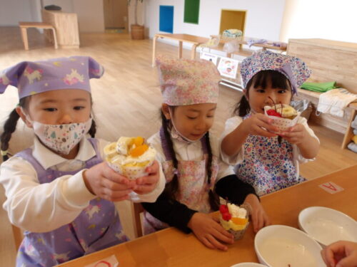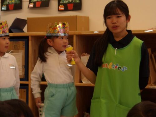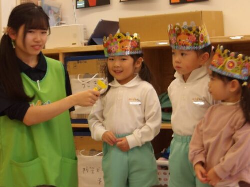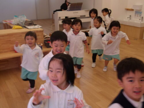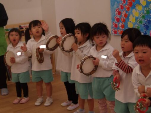 各クラスずつ前に出て、いつもの手遊びを保育士と一緒にお友だちみんなの前で発表をしたり、楽器(手首につけた可愛い鈴、保育士お手製のハンドベル、タンブリン、鈴、マラカスetct・・・)を使った演奏の発表会をしました⭐️