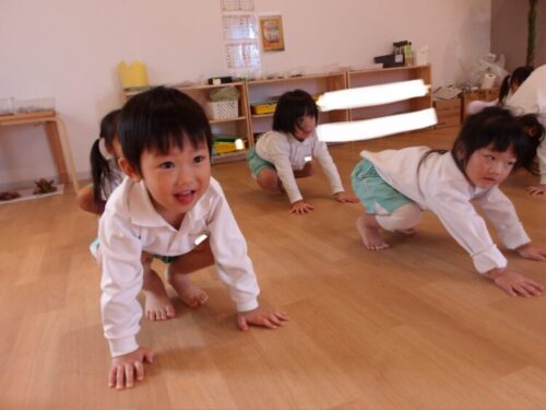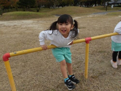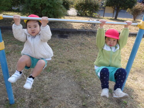 よ~く見ていた、そら組にじ組KIDSたちは、お手本を一生懸命真似っこして、【腕を曲げて】【お腹は鉄棒にくっつけて】のポイントを押さえて、何回も何回もやってみようとチャレンジしていました!😄