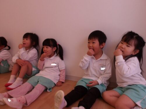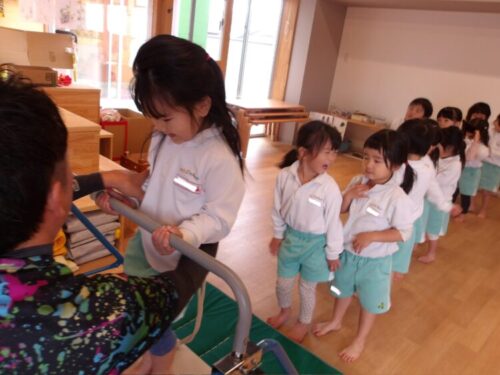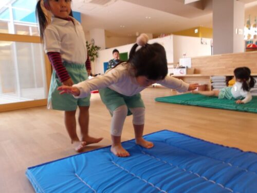 練習中は起き上がる時についてしまう子が多かったですが一人ずつのテストが始まると緊張の中、マットにつかずに前転できたお友達もいましたよ!😄