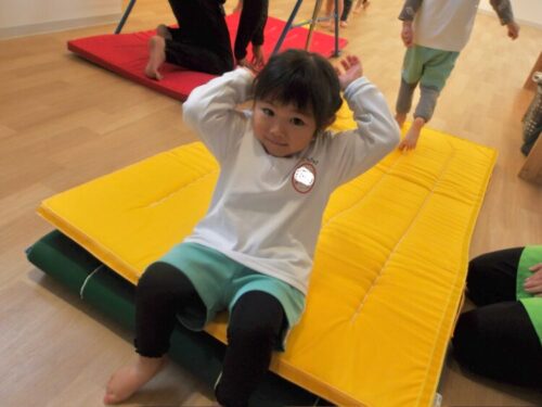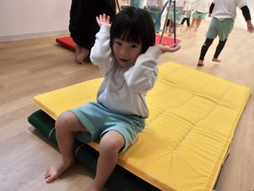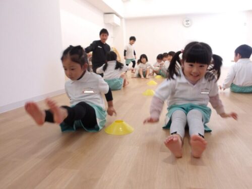 体操教室では新しい技「お尻をつけて進む」をしました!
