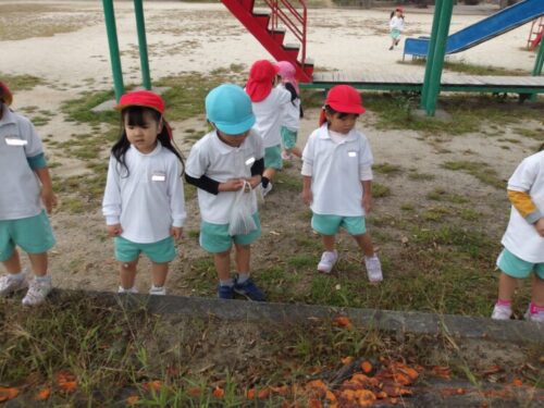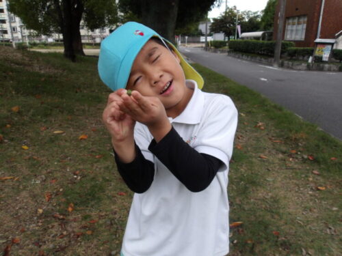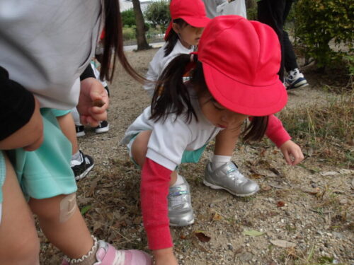 どんぐりの木があって沢山どんぐりが落ちているのにみんな大興奮!両手いっぱい拾ってたくさん集めていましたよ😄