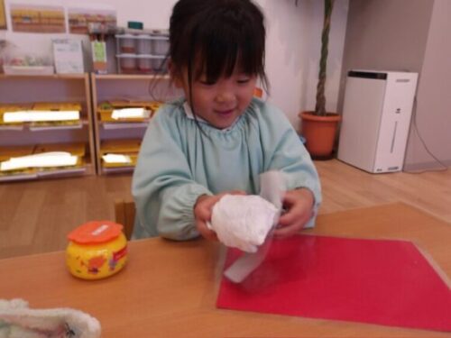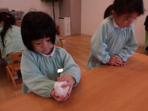 「丸いおにぎりにするー!」と言って、力強く握っていましたよ😄