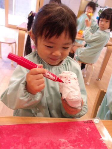 クレヨンで描いてもいい?と好きな絵や模様を描いているお友達もいましたよ😄