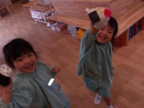 「こしょぐったーい!」と塗り合いっこを楽しんでいるお友だちも沢山いましたよ☺️