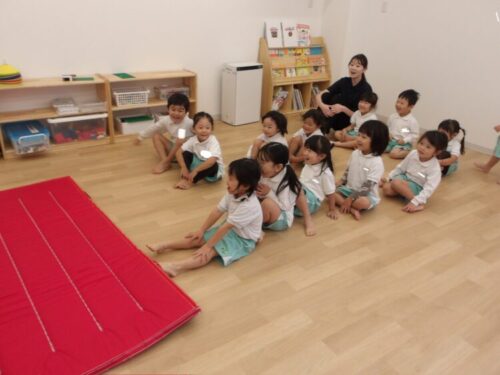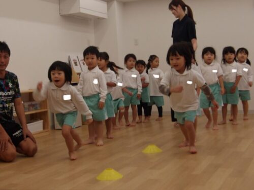後ろ周りや両足ジャンプ、ケンケンも少しずつできるようになってきており、子どもたちも先生に褒められるようにと、楽しく今日も頑張って挑戦していましたよ😄