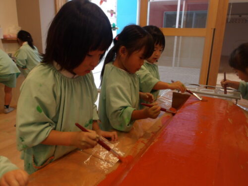 ポンポンスタンプと筆を出すと圧倒的に筆が使いたい子が多かったです😂