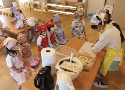 年長さんが包丁を使って半分に切ってくれました!