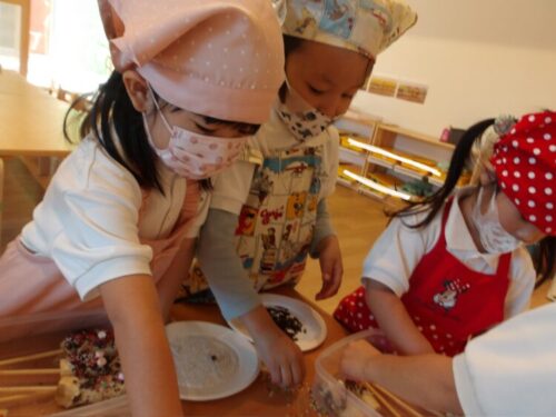 具をつけたり、ペンでふりかけを描いて作っていました😄