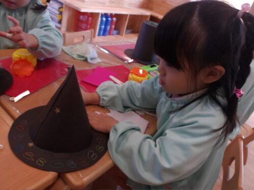 今日はハロウィン会で使う衣装作りをしました!