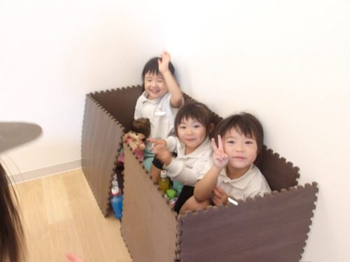 マットを立ててレンガの家!と囲って家を作って遊んでいましたよ😆
