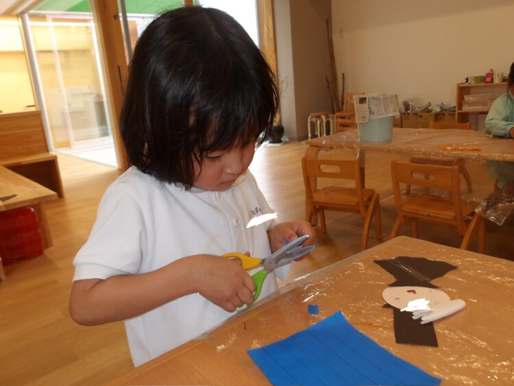 作り終わった後は机に座って箸を使って