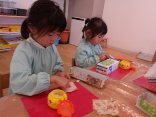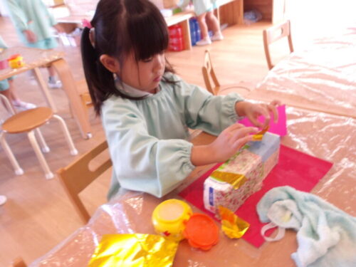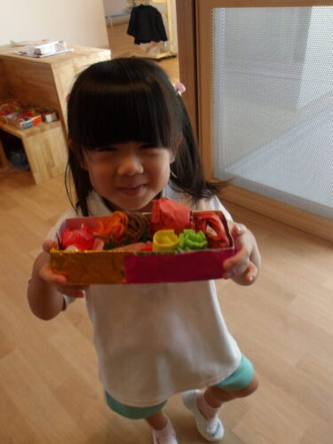 まずは、布や折り紙でオリジナルお弁当箱を作りました🍱