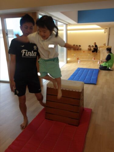高いところからのジャンプも先生からの応援や補助で恐怖心に打ち勝って挑戦できました!