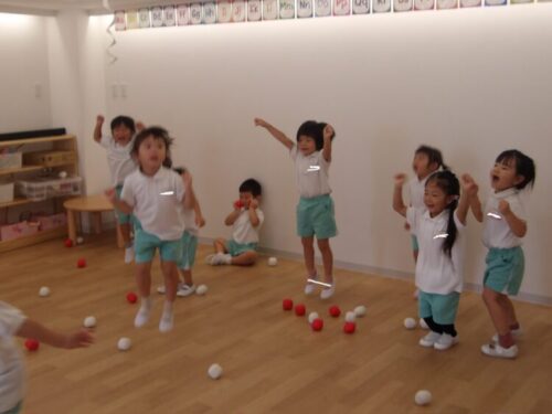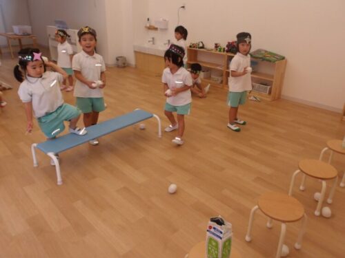 今日は運動会の話をして、披露する競技をたくさん練習しました!