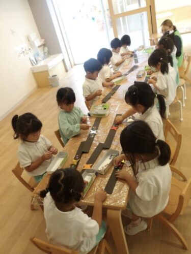 キラキラシールは大人気🤩クレヨンで模様を描いたりと個性あふれたはちまきが出来上がり子供達も大満足😄