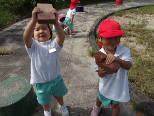 公園にレンガもあり「レンガだ!」と子供達も興味津々!