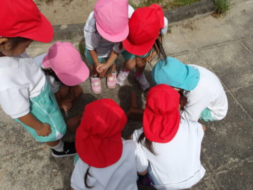 ↑ダンゴムシをみんなで囲って見ています☺️