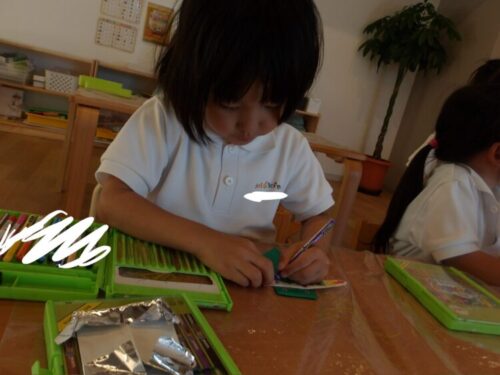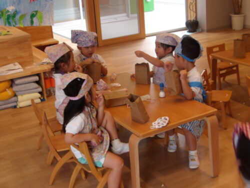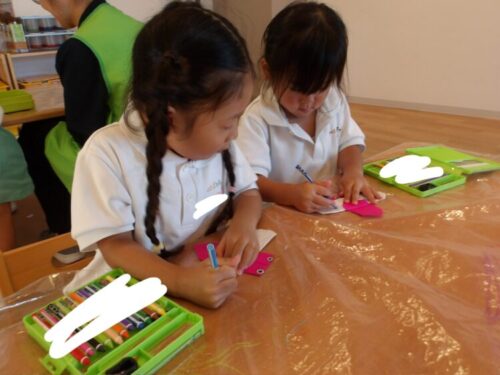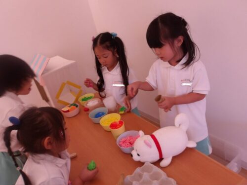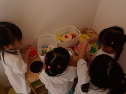 みんなで協力してお花ビーズを色分けし、お店屋さんを開いて遊んでいましたよ😄